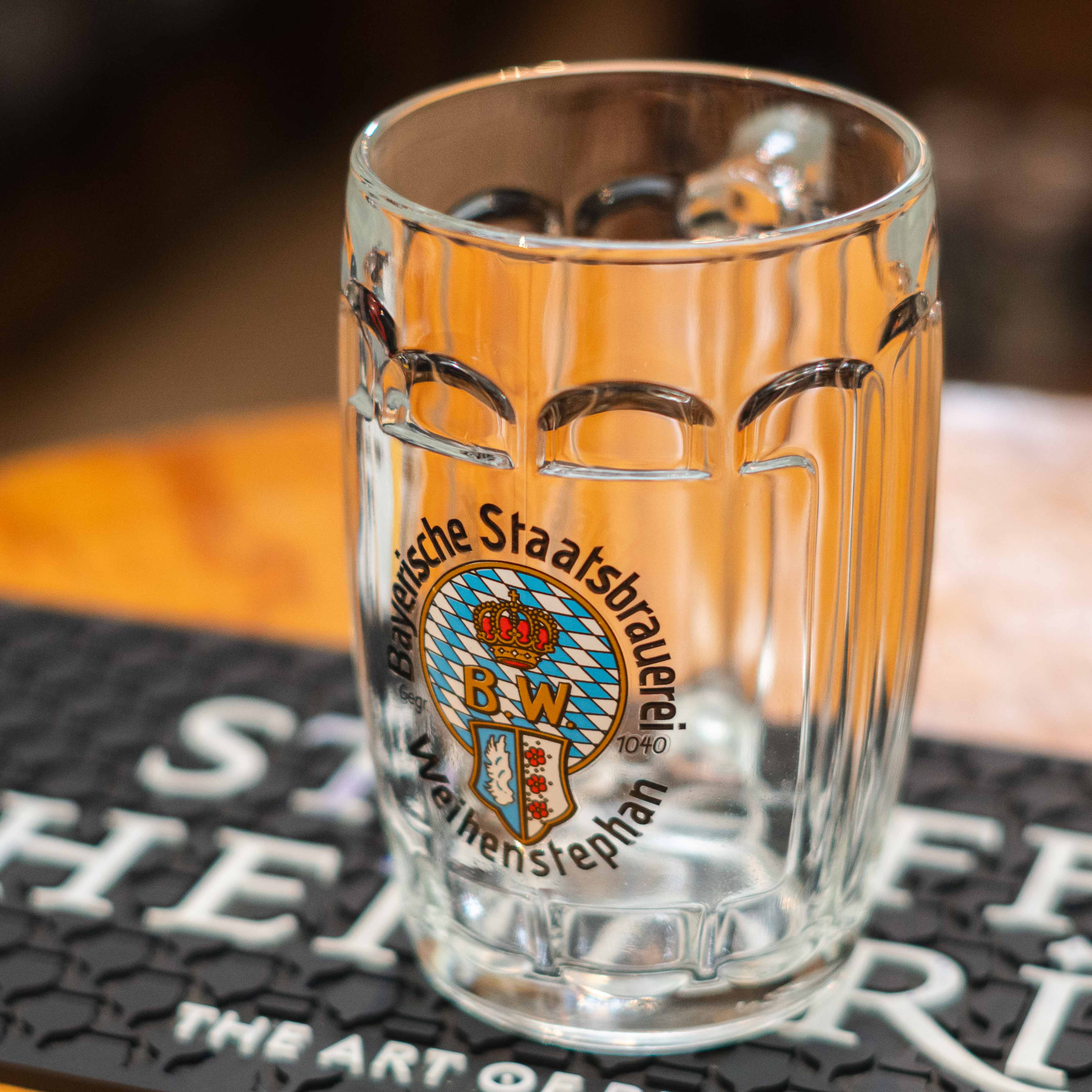 ¡Sostén casi 1000 años de historia en tu mano! Este es el Tarro Oficial de la Bayerische Staatsbrauerei Weihenstephan, la cervecería más antigua del mundo (fundada en el año 1040 en Freising, Baviera). Beber en este tarro no es solo refrescarse, es rendir tributo a los monjes que perfeccionaron el arte de la cerveza hace un milenio.