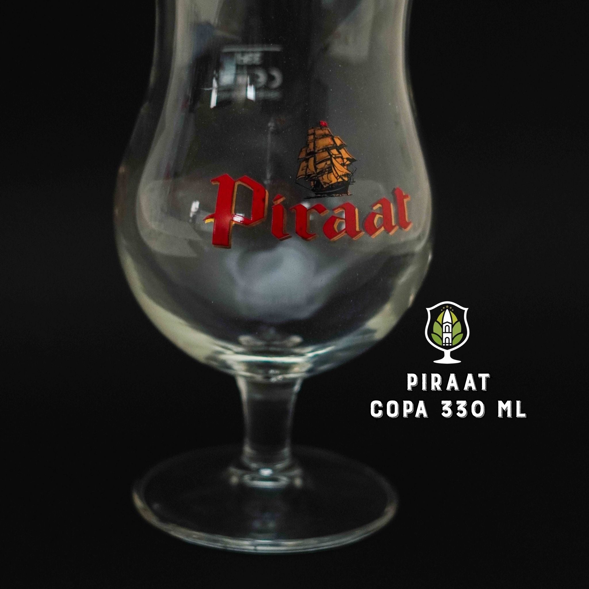 La Copa Piraat de 330 ml es el tesoro más preciado de la cervecería Van Steenberge. Este cáliz de diseño imponente captura la esencia de la famosa "Living Ale" belga, luciendo con orgullo el nombre "Piraat" en letras góticas rojo fuego y la icónica imagen del galeón navegando a toda vela, todo coronado por un elegante borde dorado que añade un toque de distinción clásica.