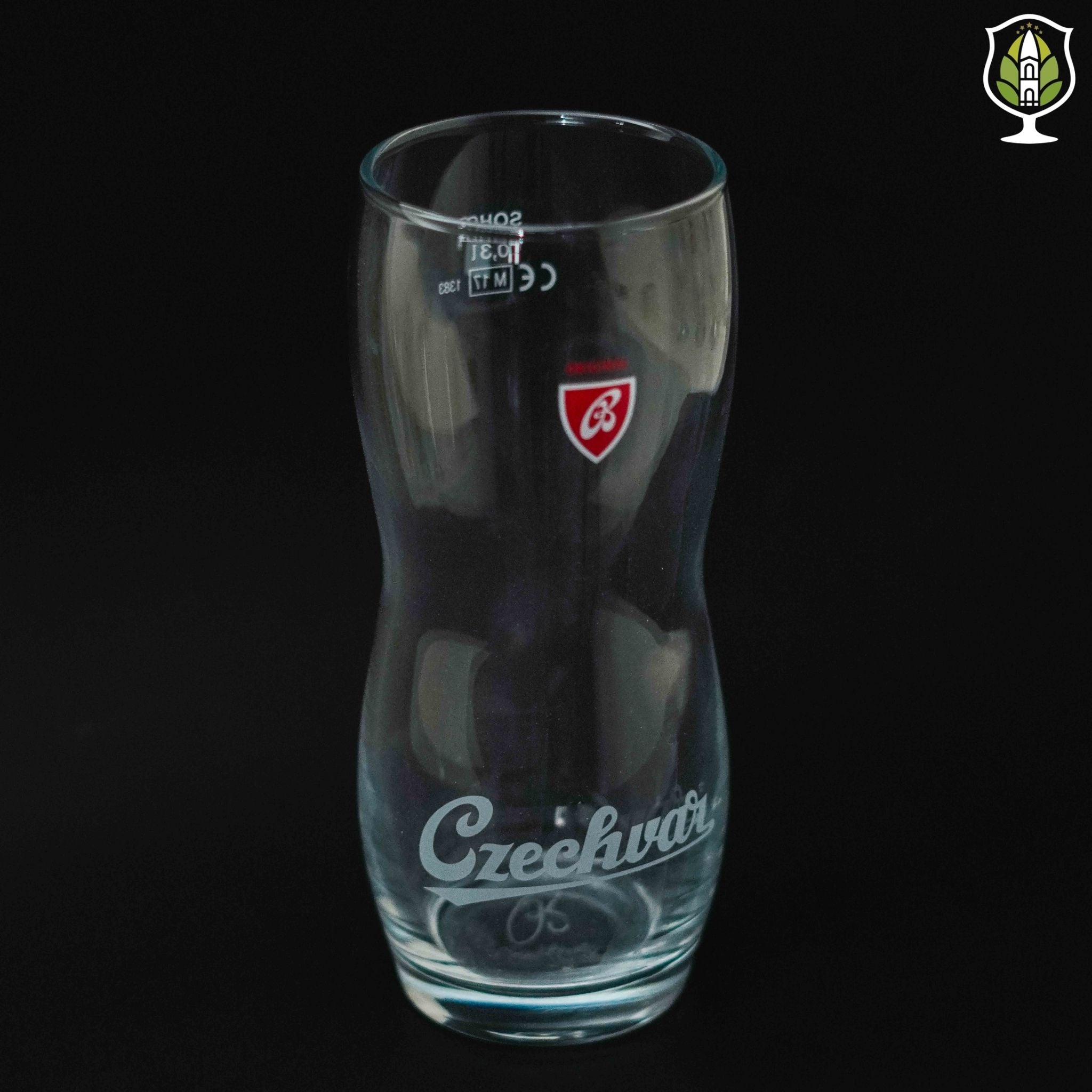 El Vaso Czechvar de 330 ml es el recipiente oficial para disfrutar de la auténtica "Lager del Pueblo", conocida mundialmente por su tradición en České Budějovice. Este vaso destaca por su silueta única y ergonómica, luciendo en la parte inferior la firma clásica de Czechvar en blanco y en la parte superior el distintivo escudo rojo con la "B", símbolo de garantía de origen y calidad.