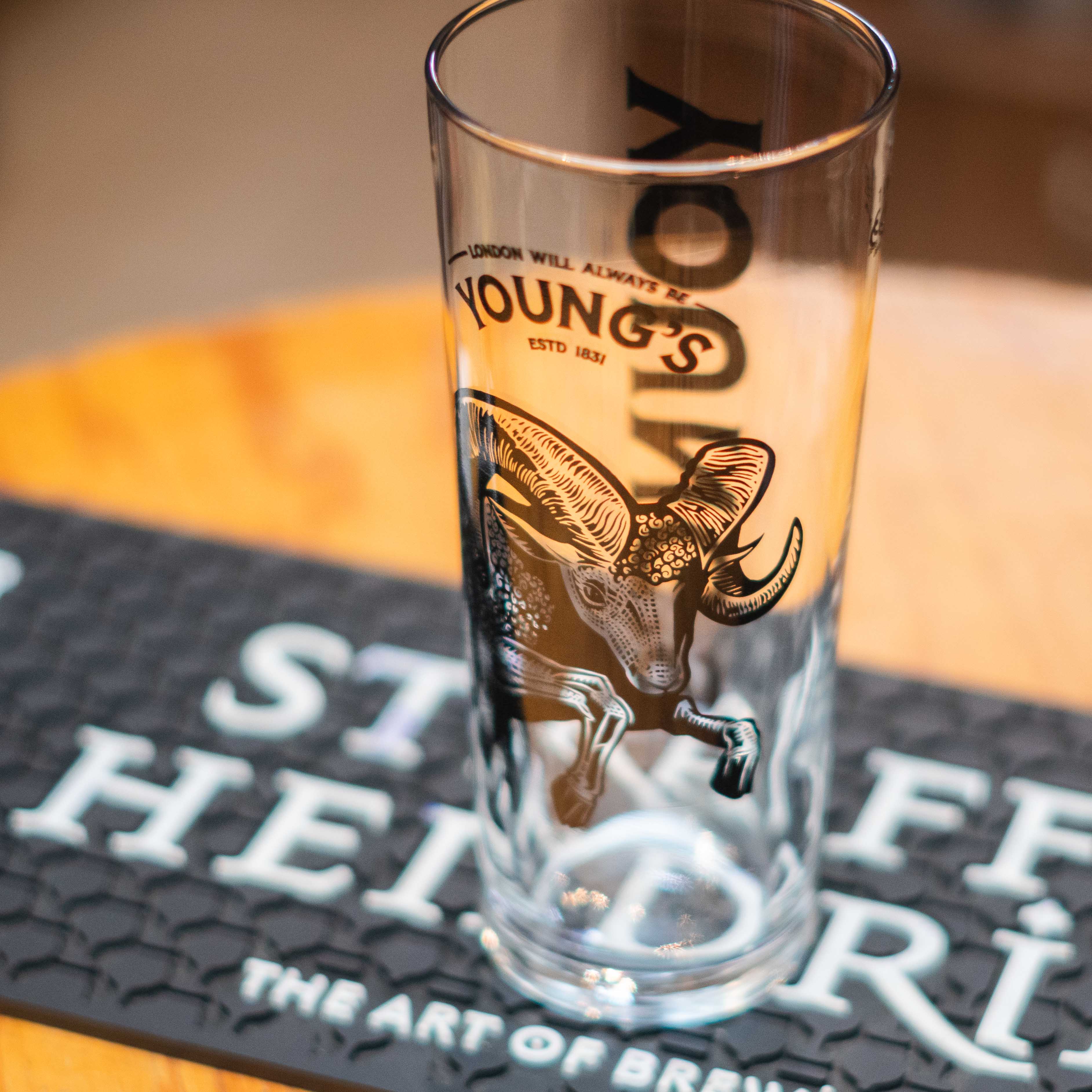 ¡Londres siempre será joven (Young's)! Este vaso oficial de Young's Brewery rinde homenaje a una de las cervecerías más antiguas y queridas del Reino Unido (fundada en 1831). A diferencia de otros modelos, este diseño pone en primer plano al legendario Carnero (The Ram), la mascota que simboliza la fuerza y la terquedad de la calidad británica, acompañado por el lema histórico: "London will always be Young's".